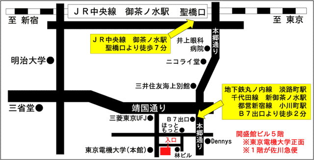 JR中央線「御茶ノ水駅」をご利用の場合は、聖橋口より徒歩7分。